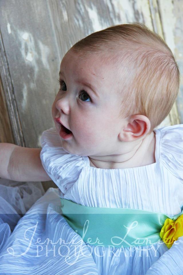 This baby girl loves her Daddy! We tried and tried to get her to smile for this photoshoot, but all she did was stare at the camera! Poor Daddy had to drop everything & come rescue the photoshooot.